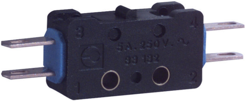 Microswitch, double break, side outputs, inverter, solder or quick connect terminals 2.8x0.5