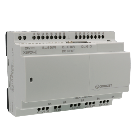 8 Analog - 4 High Speed), 8 Relays Digital Outputs , Local Datalog, Free Soft, MEM. 1024 blocs, Specific FBD, 32 bits mangement, Modbus RS485, Bluetooth/Virtual Display opt