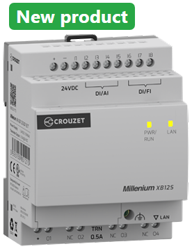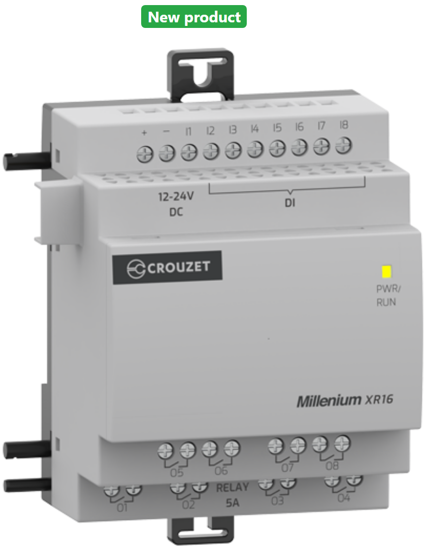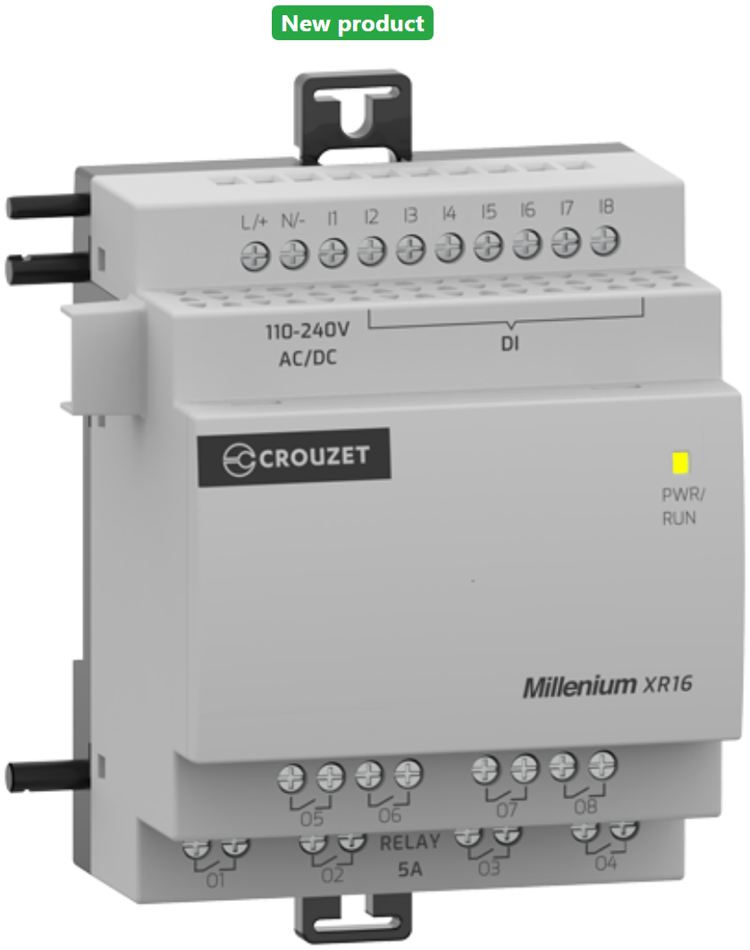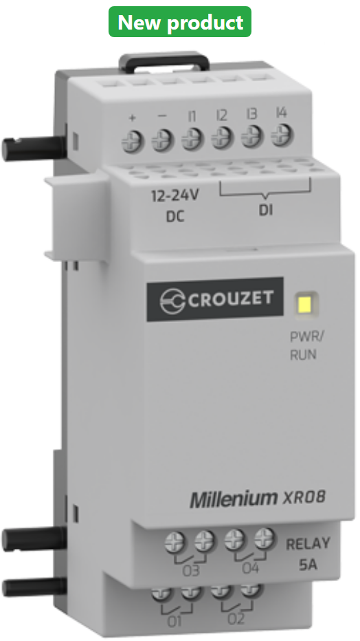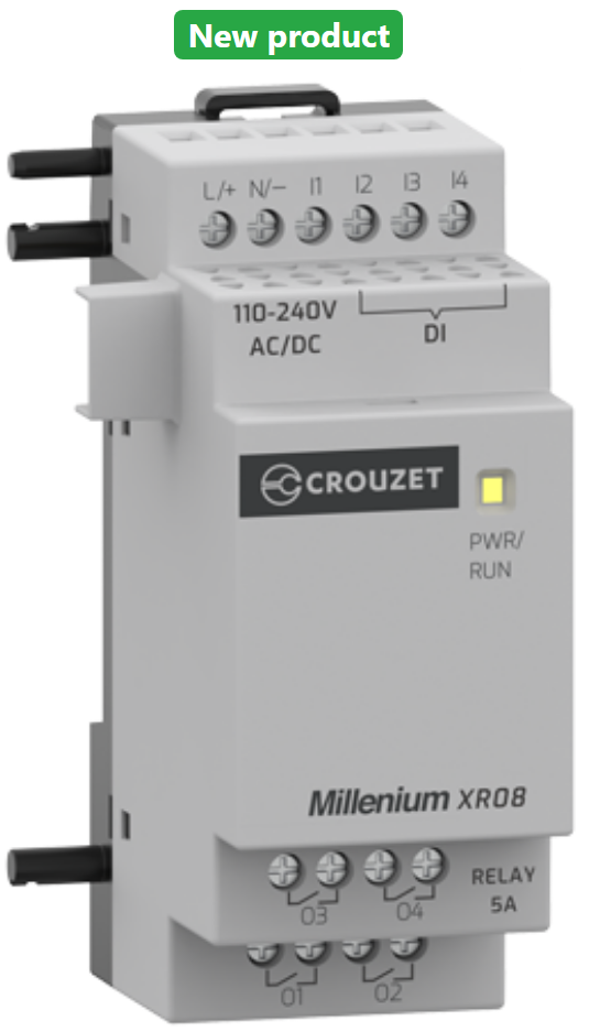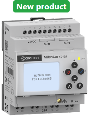 Millenium Logic Controller, 12 I/Os, 8 Digital Inputs, 4 Digital Relay Outputs, 24 VAC/DC, Ethernet Connectivity, RS485 Option, Datalog, Webserver, Crouzet Soft, Without Display