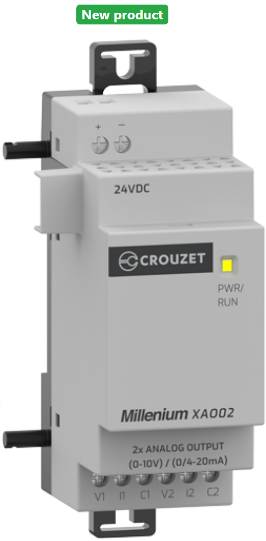 Millenium Analog Expansion, 35 mm, 2 Analog Outputs 0-10V / (0/4-20 mA), 24 VDC