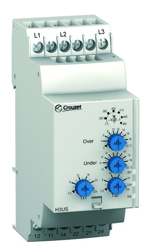 Phase and voltage monitoring relay H3USN, three-phase, measuring range 96-332 VAC, 120-277 VAC, 2 C/O, 5 A, DIN Rail, 35 mm
