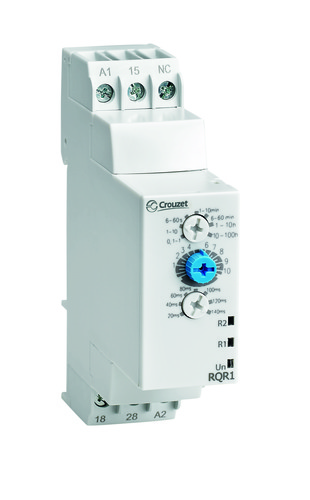 Chronos 2 relay timer RQR1, 24 VDC / 24-240 VAC, 2 C/O, 5 A, 0.1 s - 1 h, function Q: star-delta, DIN Rail, 22.5 mm