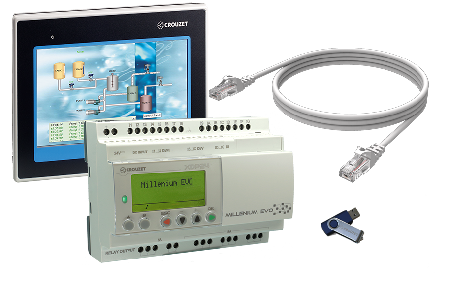 Kit Crouzet touch HMI, CTP104N-E ethernet performance version + XD10R Millenium 3 logic controller & cables