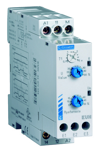 Relais de surveillance de tension EUH, plage de mesure 15-600 V, 230 VCA, 1 C/O, 8 A, rail DIN, 22,5 mm