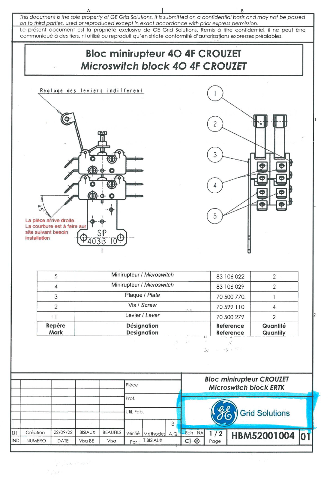 Microswitch, sur plaque, (ensemble microswitch accessoire 70 599 110 + 70 500 279 + microswitch 83 106 029 + 83 106 022 monté sur platine 70 500 770)
